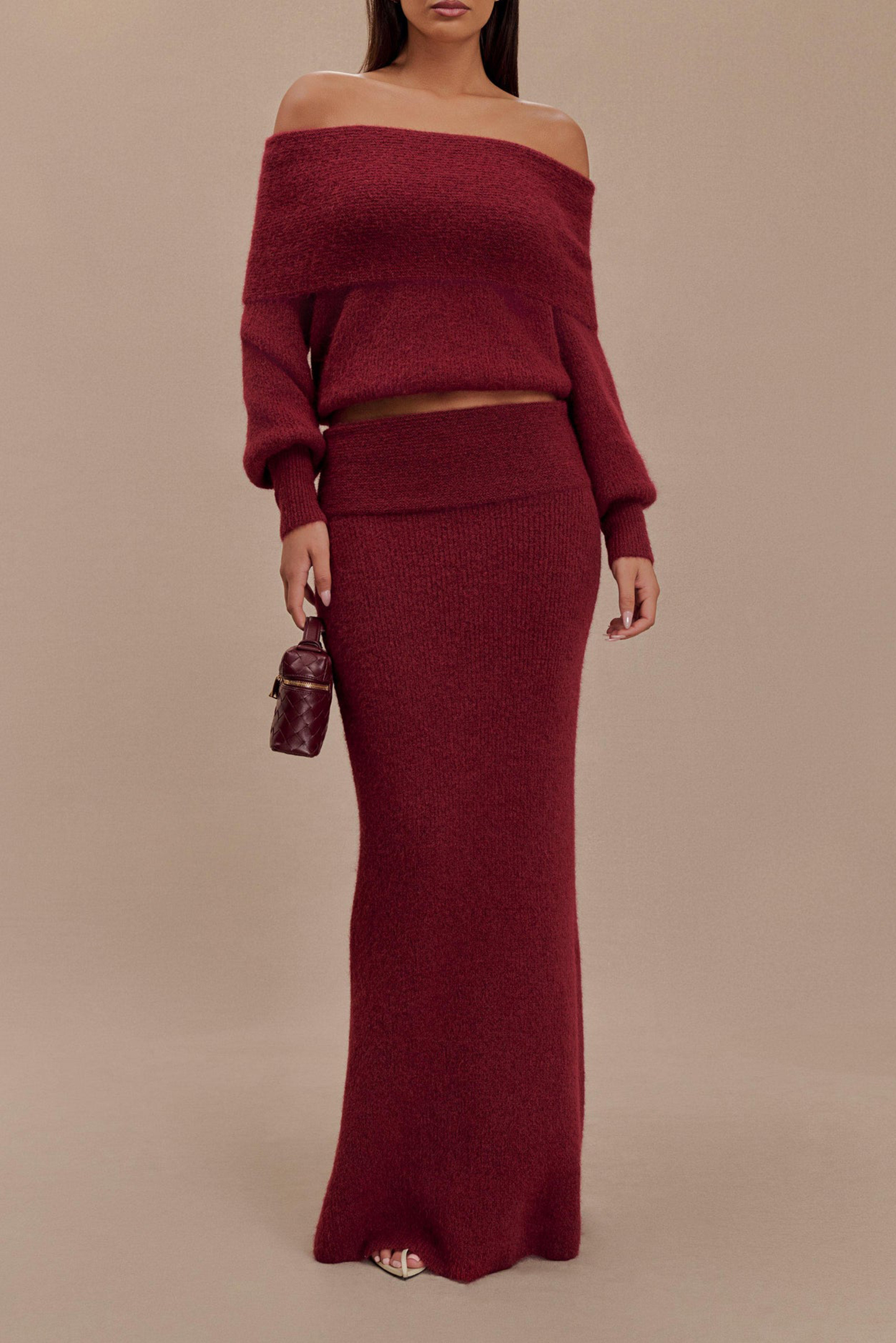 Skinny Knit Maxi Skirt With Overlay 52978679